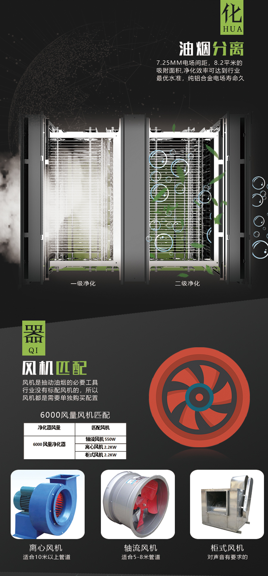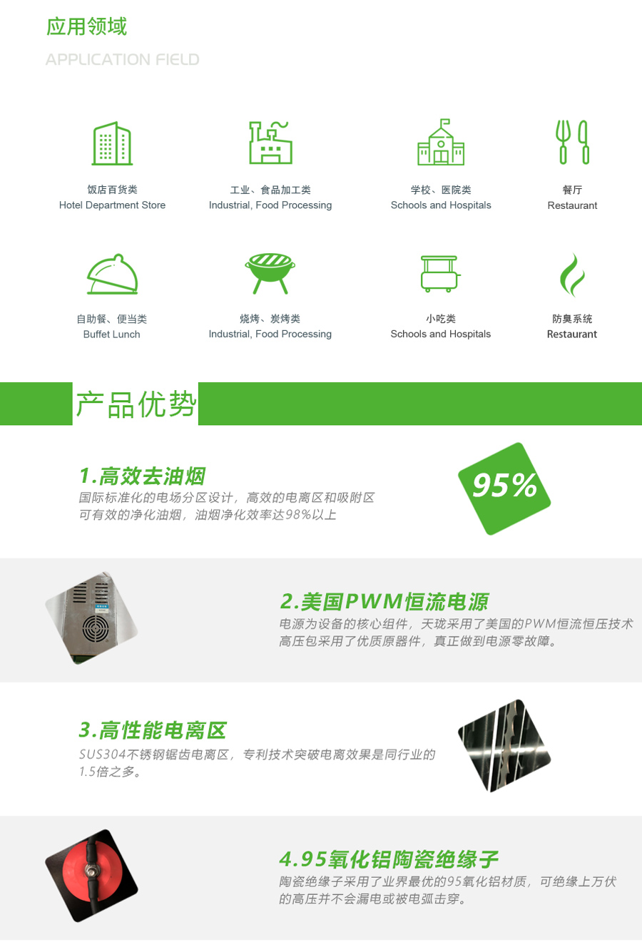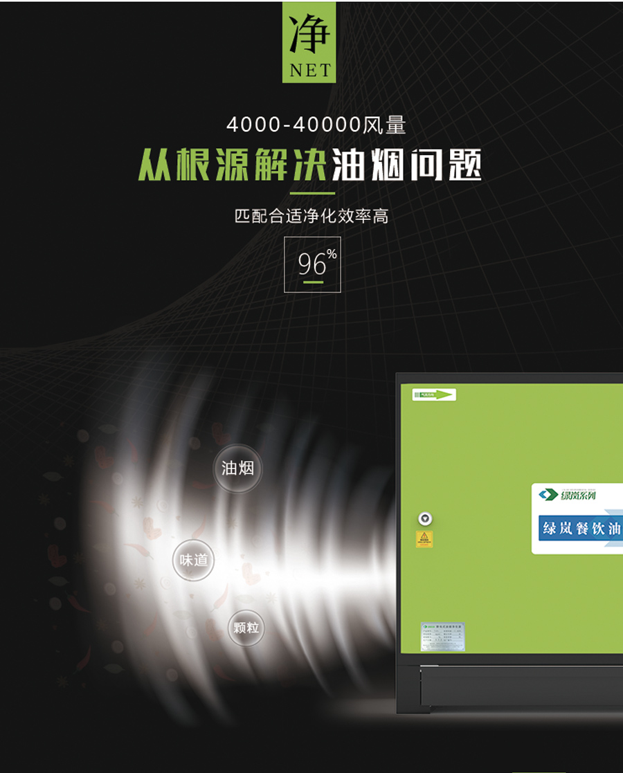 綠嵐12000風量低空直排靜電式餐飲廚房油煙凈化器設備98%凈化效率